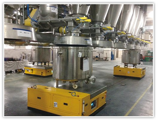 該系統用於(yú)多粉料、多油料混合物料稱量。根據不同物料的物理特性和化學特性採(cǎi)用多種結構設計方式,稱量範圍寬、精度高、速度快,除塵系統採(cǎi)用物料回收環保型設計,無三廢排放。採(cǎi)用AGV無線稱量小車,以自動控制系統爲核心,管理軟件具有配方管理、數據報表及配料過程的全自動控制及遠程監控等功能。