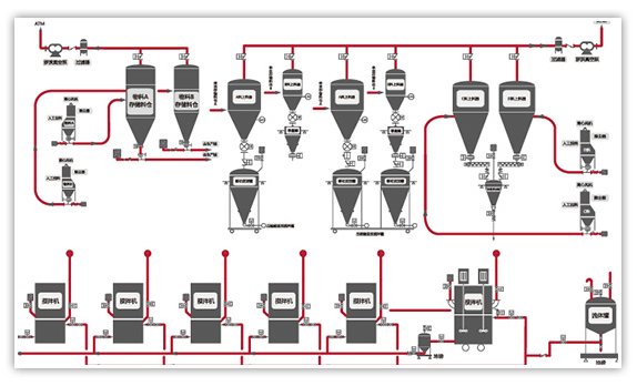原料輸送:可實現大批量、遠距離、高效率輸送;快速準確(què)的取料並(bìng)輸送到指定位置;管道封閉輸送有效避免污染。